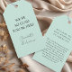 We´re so glad you´re here! Elegant, minimal, handwriting, light green "Gift Tag".