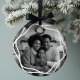 Add a touch of sophistication to your holiday décor with our Elegant Minimal Leaf Foliage Personalized Photo Ornament. This exquisite ornament features a timeless black-and-white line pattern frame adorned with delicate leaf elements, creating a refined and stylish look that will complement any holiday setting. Personalized with your family name and the year, this ornament becomes a treasured keepsake that commemorates special moments and memories. The back side of the ornament features a dedicated space for a black-and-white photo, elegantly framed with the same intricate line pattern, ensuring that your cherished memories are beautifully showcased. Designed with elegance and simplicity in mind, this ornament is perfect for hanging on your tree, adorning your home, or giving as a thoughtful and personalized gift to loved ones. Its versatile black-and-white design ensures that it will blend seamlessly with any décor style, making it a timeless addition to your holiday collection.