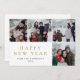 Elegant Minimal New Year Cheers Family 4 Photo Holiday Card