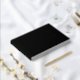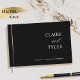Elegant wedding guest book in a sleek, modern, and minimal design with smooth velvety black hardcover and real foil details in the foil color of your choice. Foil in gold, silver, or rose gold. Design with the ability to add any text you like on the front, spine/side, and back. If you prefer the back without any text, please leave their corresponding template text boxes blank.