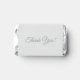 Custom wedding Hershey's Miniatures candy favors displays an minimal "Mr and Mrs" design that can be personalized with your married last name. Simple and chic design is features elegant serif typography with a scrolling calligraphy script accent. A script "Thank You" message appears on the back. The classic silver gray text and light gray background colors can be modified.