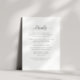 This elegant wedding details card features a beautiful blend of modern script and serif fonts. The sophisticated design will add a touch of refined simplicity to your wedding suite. With ample space for your wedding website link at the bottom, this card is not only stylish but also functional. It is the perfect way to provide your guests with all the necessary information while maintaining a chic and contemporary aesthetic.