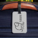This personalizable luggage tag is decorated with a minimalistic parade of linear elephants set against an elegant light grey background on one side.