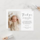 Our gorgeous greeting thank you card is a sophisticated way to share your gratitude. This card showcases your custom baby photo on the left against a pristine white background, creating a simple yet striking look.