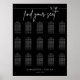 Welcome your guests in style with this elegant minimalist black wedding seating chart poster. Featuring a sleek black background, crisp white modern script, and clear table layout, this design combines sophistication and practicality. Perfect for black-tie, modern, or monochrome wedding themes. Easily customize with your guest names and table numbers to create a personalized, coordinated reception display. Pair it with matching wedding stationery, table numbers, and place cards for a cohesive look. Available in multiple sizes to fit your venue.