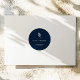 Add an elegant finishing touch to your wedding favors, invitations, or save-the-dates with this minimalist navy blue botanical wedding sticker. Featuring a deep navy background with a simple white botanical sprig illustration, this circular sticker design offers a modern and refined aesthetic perfect for contemporary weddings. The layout includes space to personalize the couple's names, wedding location, and date, making it ideal for sealing envelopes or decorating favors with a cohesive and sophisticated look. The understated botanical element adds a natural, organic feel that complements garden weddings, urban venues, or minimalist themes. Whether used for custom packaging, wedding welcome bags, or stationery accents, this personalized round wedding sticker brings timeless style and professional polish to your big day.