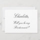 Elegant Minimalist Bridesmaid Proposal Card, please personalize both sides of the card as desired, using the online personalization template before ordering. The design can also be personalized for other bridal attendant roles, such as Flower Girl, Maid of Honor/Honour and Matron of Honor/Honour. A stylish card featuring elegant black text in a minimalistic layout.