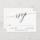 Wedding rsvp card in a tasteful minimalist design combining calligraphy script with standard fonts in black and white.