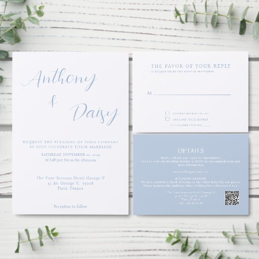Don’t forget to check out our Elegant Minimalist Dusty Blue wedding collection as we have prepared ALL MATCHING WEDDING STATIONERY for you: Wedding Invitations, Detail Cards, RSVP cards for guests, Menus and Custom Favor tags.
