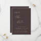 This save the date card features elegant handwritten script on a rich mocha brown background. The clean minimal layout creates a timeless announcement that works beautifully for modern, fall, or classic weddings. The refined typography highlights the couple’s names while keeping the design simple and sophisticated. Personalize the names, wedding date, and city to share your upcoming celebration with friends and family.