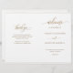 Welcome your guest with this exquisite wedding ceremony program, featuring gorgeous modern hand written script calligraphy details in faux gold foil, rest of text in golden hues. Personalize wording in all sides. NOTE: this programs arrive flat and require folding down the middle to assemble. The default value paper is recommended. Ability to delete top and bottom lines if desired by selecting "customize further". For a clean fold we suggest the use of inexpensive bone folder. The size refers to the program "before" it's folded. Part of our "Elegant Calligraphy Minimalist Wedding" collection with a variety of coordinating products available.