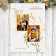 Elegant Minimalist Gold Line Drawn Leaves 2-Photo Foil Holiday Card