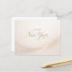This refined design features a graceful Happy New Year message rendered in flowing gold script against a soft ivory background. The minimalist composition highlights delicate typography with gentle curves and elegant letterforms, creating a timeless and sophisticated feel. A subtle arc of shimmering gold light and tiny sparkling accents sweeps across the lower portion, adding just the right touch of festive glow without overwhelming the clean layout. The neutral cream and warm metallic palette gives the artwork a calm, upscale presence, perfect for a chic and understated New Year greeting.