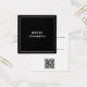 An elegant minimalist black modern business card with space for your name and contact information. This design includes a QR code on the back.