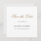 This simply chic wedding save the date flat card template features an elegant, minimalist, modern design. The default card shape is a distinct square, but you can easily change this to a more standard shape and size if you prefer. You can also try it in editing mode with both sharp and rounded corners, as both looks work well with this design! The front features your first names, date and wedding locale and a 'save the date' message in an elegant gold tone called California Gold(color A98F64). We've chosen a fancy script for the 'Save the Date' part of the design. We love its flourished capital letters, lively loops and ornate flair. This 'Save the Date' design element is included on both sides of the card. You can edit this or any of the other text on either side and change the font, text size or color to suit your style. You might choose to make the date on the front or back a different format. And on the back you can of course in addition to replacing our sample info with your own, delete text fields that you don't need, or change the wording, as well as change font, size and color. For example, you might change 'are getting married' to 'are tying the knot', etc. or delete our sample website details without replacing them with your own. Or you might choose to include your last names as well your first names on the back or the front. On the back, we've chosen the same gold tone for your names that we used for the 'Save the Date' text on the front. When you edit the text to show your own names, you might prefer to change this color to black or another tone. The front names, date and location text is a slightly softened black black(color 1C1C1C), and on the back, in addition to the gold names text, we've used this slightly softened black along with standard black and dark gray. The default background color on the front of this card is set as transparent, to let the paper color simply serve as the base tone. But you can edit this and choose a specific color for the base. On the back we've chosen a background color called White Smoke, it's a very light gray that's mostly white. You might change this to transparent or a different color. Matte, the default paper type, has a soft warmth and understated elegance that works well with this minimalist design. But you might change this to semi-gloss, or one of zazzle's Signature or Premium papers, which lend an added richness. Customize this elegant minimalist wedding save the date flat card template with zazzle's intuitive editing tools and your inspiration and make it uniquely yours. And check our store for other simply chic modern save the date cards!