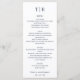 Elevate your wedding reception with the Elegant Minimalist Navy Blue Letters Wedding Menu. Featuring a crisp white background with refined navy blue text, this sophisticated design includes space at the top for the couple’s initials, followed by well-organized sections for appetizers, salads, entrées, and desserts. At the bottom, there is a customizable area for the couple’s names and wedding date. Perfect for modern, elegant, or classic weddings, this menu blends simplicity and timeless style, adding a polished touch to your table setting.