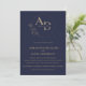 Elegant minimalist navy blue monogram wedding invitation