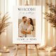 Welcome your guests with understated sophistication using this elegant minimalist photo wedding welcome foam board. Designed to showcase your favorite wedding or engagement photo with clean typography and refined spacing, this sign adds a modern yet timeless touch to your ceremony or reception. Printed on durable, high-quality foam board, it’s lightweight, easy to display, and perfect for couples who appreciate simple elegance and modern design.