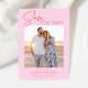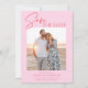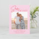 A modern pink and red save the date photo announcement featuring a calligraphy script font and simple minimalist design. This unique save the date card is a trendy way to announce your wedding. THE SAMPLE PHOTO IS NOT INCLUDED. REPLACE WITH YOUR OWN PHOTO BEFORE ORDERING.
