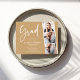 Elegant Minimalist Script 3 Photo Graduation Invitation Postcard in tan color.