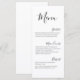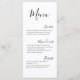 The flowing script “Menu” header adds a graceful focal point, while the structured course sections keep each dish clearly presented and easy to read. The classic black text on a soft light background ensures versatility, allowing this menu to complement modern, formal, traditional, or monochrome wedding décor effortlessly.