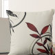 Stylish throw pillow features a simple artistic watercolor leaf design in a cream and burgundy red color palette with black and gold accents. A simple modern artistic design features a watercolor leaf and a geometric circle composition with shades of burgundy red with gray black and gold accents on a plain simple cream colored background. This elegant abstract composition is built on combinations of repeated leaves and circles with an inquisitive hummingbird in the upper left corner; a layered design to give depth and perspective to the overall design.