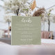 This design features an wedding elegant modern simple green tabletop sign, a minimalist signature drinks template, a simple tropical destination weddings, calligraphy script typography table top, tropical greenery leaves foliage, drinks bar barware alcohol sign, beer wine cocktails menu, tabletop wedding signs, wedding reception sign signage, wedding party supplies decor