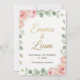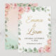 Elegant minimalist wedding invitation with watercolor floral borde