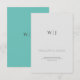 Share the excitement of your upcoming wedding with our minimalist Save the Date card, designed for couples who prefer simplicity. This elegant card features an almost white-gray background with the couple’s initials prominently centered on the top half, utilizing ample negative space for a clean look. The couple’s names and important details are thoughtfully placed on the bottom half. The back of the card showcases a stunning teal background with the couple’s initials tastefully printed in the center. This design perfectly matches our wedding invitation suite, offering a cohesive and stylish preview of your wedding day.