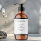 An elegant minimalist cosmetics label with a white background, black text, and a black border.