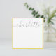 Elegant Minimalist Yellow Strips Grey Script Name Note Card
