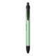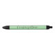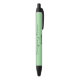 The top line of display text is an elegant black script on this mint green pen. You can replace the display text with a custom message such as your company name and phone number. The pen is mint green. The text is black. This promotional pen has no minimums.