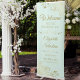 This beautiful banner will welcome guests to your wedding celebration. It features a simple yet elegant design of gold script lettering on a pale mint green background with ornate golden faux foil flourishes. All text is customizable so you can enter the appropriate information. Make your guests feel welcome at your wedding ceremony, or reception with this beautiful retractable banner or sign.