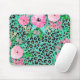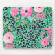 Elegant Mint Leopard Print and Floral Design Mouse Pad