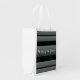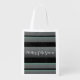 Elegant single sided striped tote bag for the eco friendly mother of the groom. Shaded stripes add a 3D effect to the printed design. Small sprinkles of white dots highlight a chic white loopy font for and elegant finish.