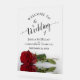 Welcome your wedding guests with this beautiful acrylic sign. The romantic design features a single long stemmed red rose lying on its side mirrored in a pool of water. The elegant script calligraphy title includes lacy swashes or flourishes on the ends of the letters, and the names of the couple and wedding date appear below.
