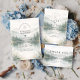 A serene and atmospheric design inspired by misty mountain landscapes and quiet forest scenery. Soft watercolor layers of pine trees and distant hills fade gently into the background, creating depth and a calm, romantic mood. The muted palette of sage green, cool grey, and soft ivory gives the design a refined, nature-driven elegance—perfect for couples drawn to minimalist aesthetics and intimate outdoor celebrations.