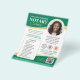 Marketing flyers are a great way to advertise your notary business and attract new clients. This stylish design showcases your photo inside a circular frame, with an elegant gold gradient. Personalize the template with your name, credentials, contact information, accreditation logos, services, and a convenient appointment-scheduling QR code. The text can be customized to suit your business. Perfect for a Notary Public, Loan Signing Agent, Mobile Notary, Certified Notary Trust Delivery Agent (CNTDA), Apostille or other legal profession. Printing colors: green, gold, black and white. Explore the online collection for matching printed designs!