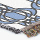 An elegant custom pattern of blue abstract scarabs, linked in a series of linear streamers.