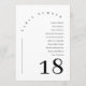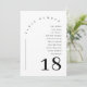 This simply elegant modern minimalist table number card features a simple serif font in an arch shape on a white background. You can personalize/customize the table number card and guests names to anything you like.