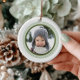 Celebrate your little one’s first holiday with this Baby’s First Christmas photo ornament. The front features your photo with a modern and simple green border, while the back includes space for a name and year. A timeless keepsake to treasure for years to come.
