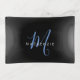 Elegant Modern Black Blue Script Monogram Trinket Tray