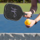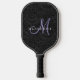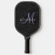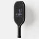 Elegant Modern Black Floral Purple Script Monogram Pickleball Paddle