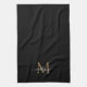 Modern Stylish Elegant Black Gold Monogram Script Name Kitchen Towel