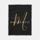 Elegant Modern Black Gold Script Monogram Fleece Blanket