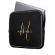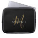 Elegant Modern Black Gold Script Monogram Laptop Sleeve