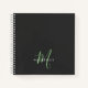 Elegant Modern Black Green Script Monogram Notebook