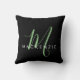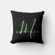 Elegant Modern Black Green Script Monogram Throw Pillow