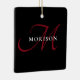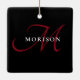 Elegant Modern Black Red Script Monogram Ceramic Ornament