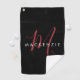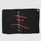 Elegant Modern Black Red Script Monogram Golf Towel